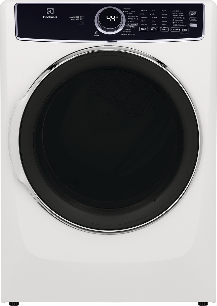 The Electrolux front load electric dryer with Balanced Dry™ technology prevents temperature spikes to keep fabrics cooler throughout the dry cycle. LuxCare® Dry uses an advanced moisture sensor to prevent over or under-drying.Read More
